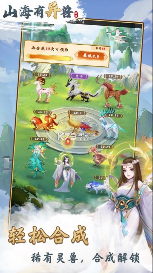 山海有异兽是一款轻松简单的休闲合成小游戏,这里拥有诸多精美的灵兽供您养育,两个低级灵兽可合成高级灵兽,通过自己的努力可以合成更加厉害漂亮的灵兽哦,幸运爆棚的玩家还有机会额外获得神兽哦,期待您的试玩!