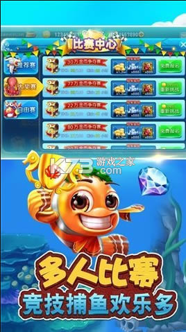 《捕鱼竞赛》真人联机捕鱼万人同时在线,捕鱼更加的刺激,免费金币抢不停,金币大丰收,双倍金币道具一网打尽,愉快的来进行游戏,无烦恼海量玩法超级的多,一炮万金,鱼雷一起来狂欢,操作上超级的灵活。