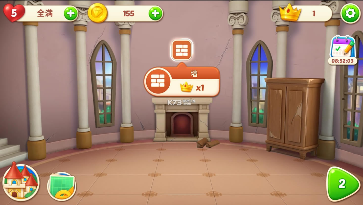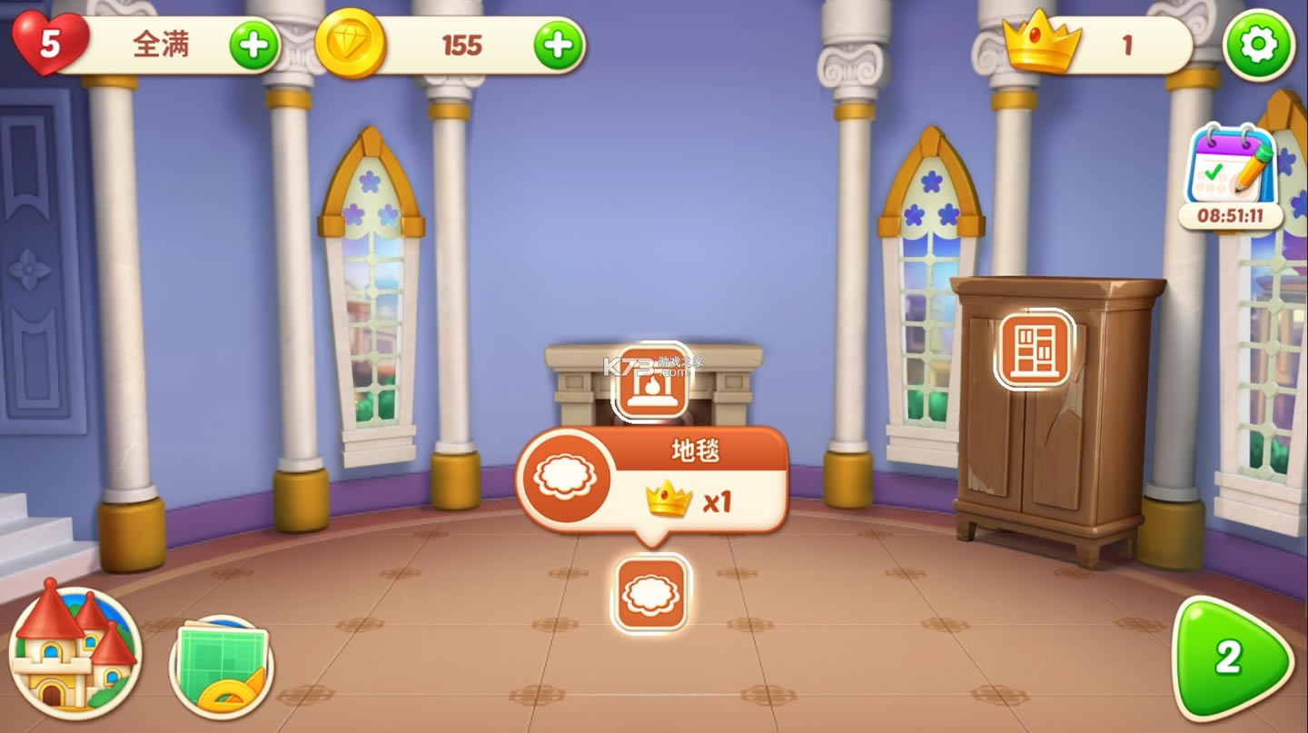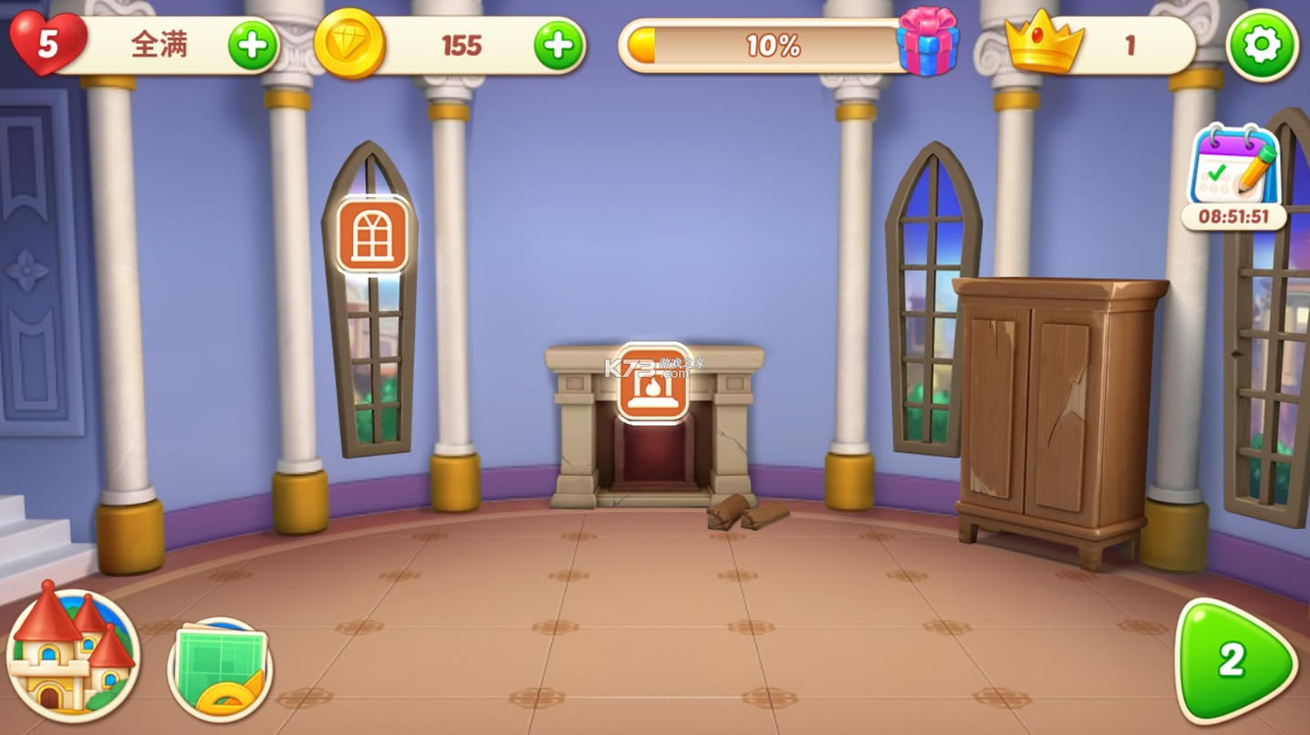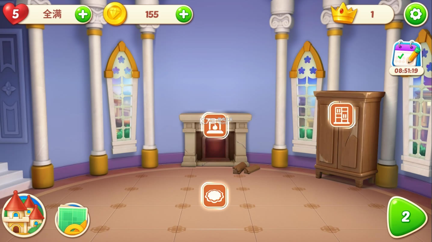 家居设计游戏,通过交换和消除宝石来装饰您的家并改变它的室内设计!让美丽的古堡重现昔日的辉煌!