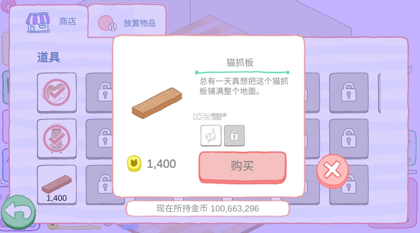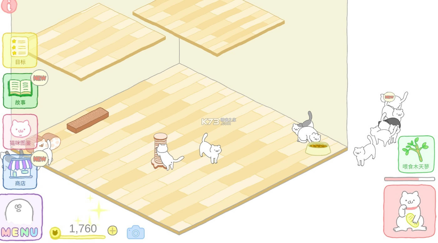 6、简单愉悦的游戏画风,提供最完善的服务,收集小鱼干,将会出现更多的猫咪