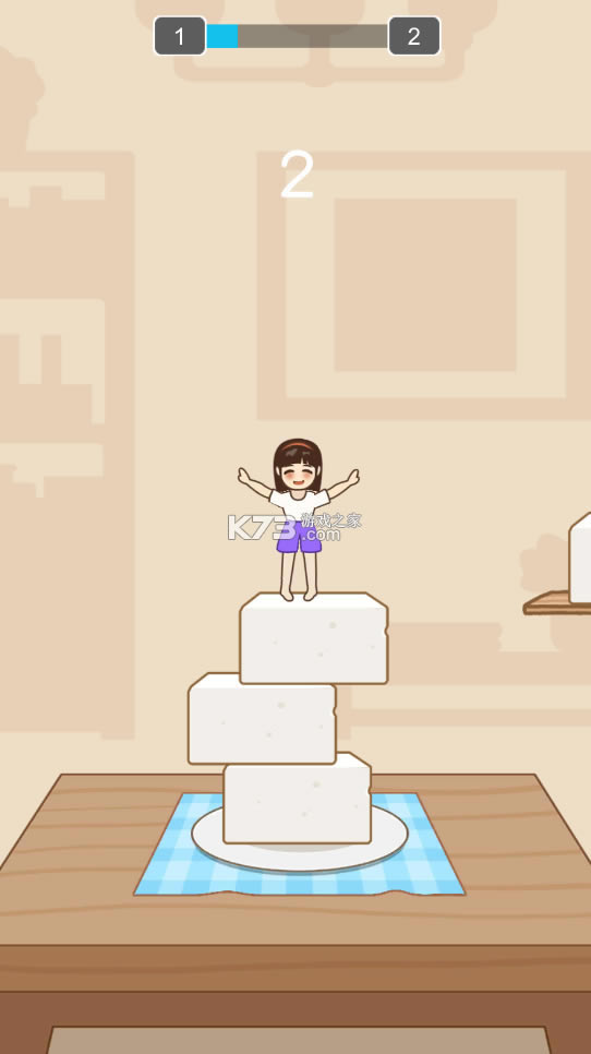 游戏的画风简洁,游戏玩法也非常的简单,玩家只需要在点击滑动屏幕就可以控制小女孩了,跳跃起来然后落在豆腐块上,不断的去叠加豆腐块进行挑战