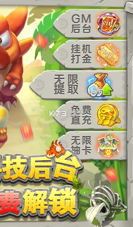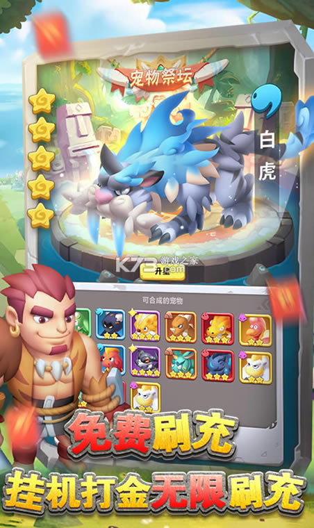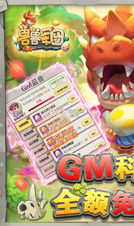 《兽兽军团-GM后台刷充》开局激活GM后台工具,首充月卡全免费,每日送免费直充,更送5星红暴,无限抽奖,无限资料,GM礼包等等!《兽兽军团》是一款萌宠养成收集休闲挂机手游,独创人宠一体骑乘作战,上百种史前萌宠和技能随心搭配,给你最畅爽刺激的战斗体验!更有丰富的部落战、boss战等大型战斗副本,和你的萌宠一起开启原始冒险吧!