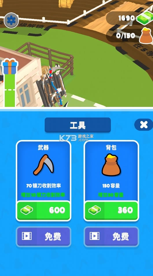 我用神器割麦子破解版中玩家可以体验到多种有趣的游戏模式,享受动作游戏一样平常的割草的快感手机农作物来兑换款项从而升级自己的农场和割草工具以及背包,到最后获得神器,以辅助自己加倍高效的收割。