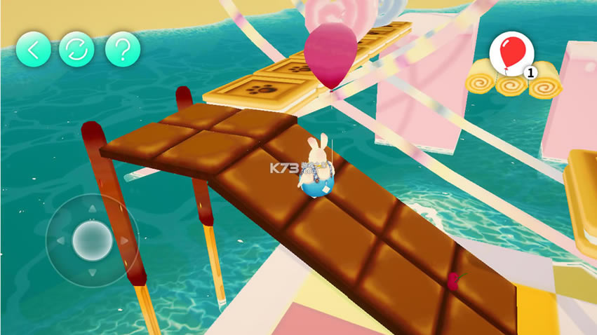 Bunny是一只小兔子,她做了一个梦,一不小心掉进甜品世界里,她需要抵御诱惑,闯过机关,抵达终点——灯塔。玩家可以控制主角的移动,点击收集气球道具,并使用气球拉动各种机关,从而通过关卡。主角中途遇到自己的灵魂,从而拥有了分身技能,Bunny和分身需要互相帮助才能继续解锁关卡,直至最后一个灯塔。我们设计了多种机关,跷跷板,摩天轮,棋盘,蛋糕等等都可以用气球控制,运动方式也不同,玩家需要观察这些机关的运动找到谜题的解法。