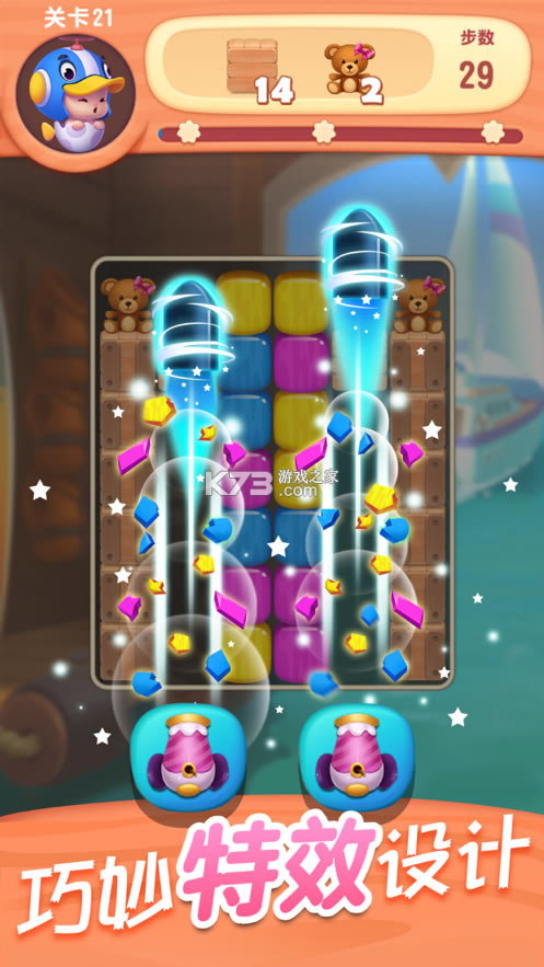 4、听说只在这魔幻的森林里,你就拥有点点消除的魔法,藏在纸盒里的秘密,被泡泡覆盖的彩色方块,魔法一键消除~消除烦恼、消除无聊,超级好玩的消消乐游戏。