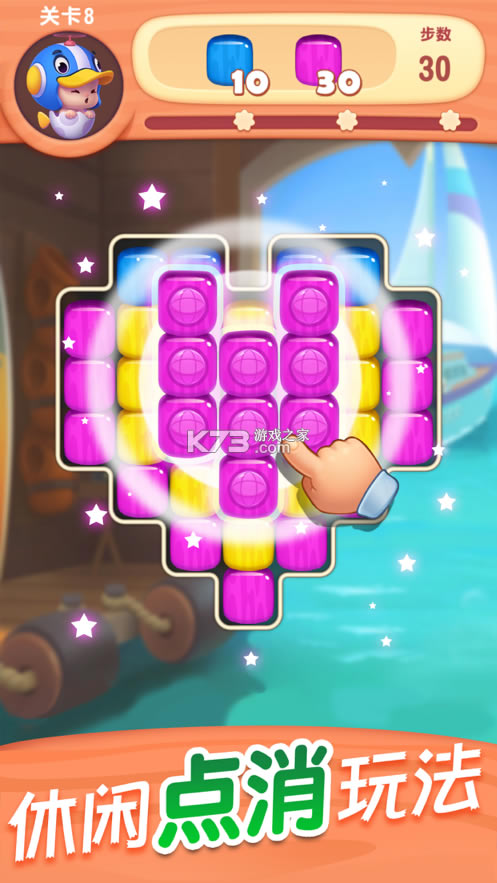 1、上百个精心设计的全新关卡,不仅能消除彩色方块,还能消除草垛、纸箱,一切的一切都是为了爱消除的你,等你来挑战!