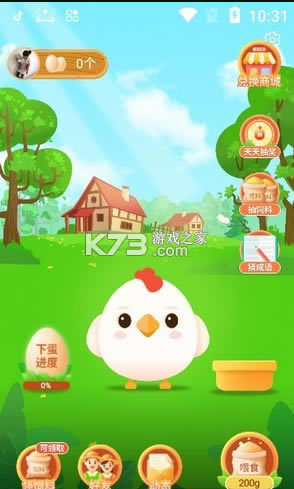 在这款游戏中玩家需要完成各种各样的任务来获取鸡饲料不断地喂养小鸡,可以给他喂食物来让他更好的下蛋,鸡蛋成熟的时候就可以收取鸡蛋来兑换奖励。