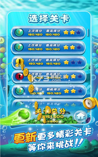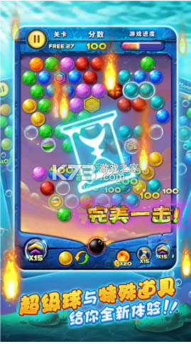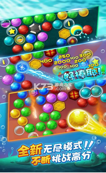 还是经典的泡泡龙玩法,邪恶的博士困住了海底动物,你需要去解救它们