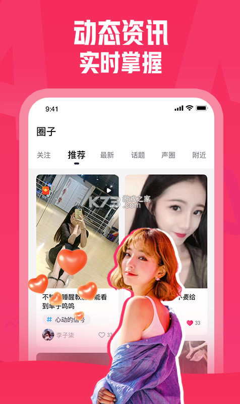 众多爱玩游戏的用户设计一款手机软件,你随时可以来到这里查看最新的游戏信息,平台还有游戏专区让你查看,按照关注、推荐、最新以及话题等多种功能键让你查看,还能查看附近的好友,让你通过多种方式兴趣交友,实时地掌握游戏的动态资讯。