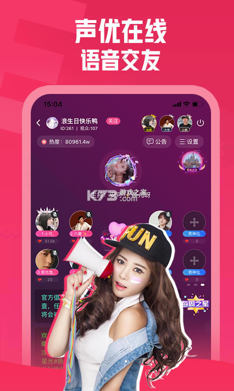 一款让玩家找到一起玩游戏开黑的手机交友软件,在软件上面有很多的吃鸡王者等等需要组队才可以玩耍的游戏,如果你不想一个玩游戏那么你就可以在这款软件上面找一些一起玩游戏的朋友彼此交流,上面上很多的声音好听的小哥哥和小姐姐们,你们的交流仅限于语音交友。
