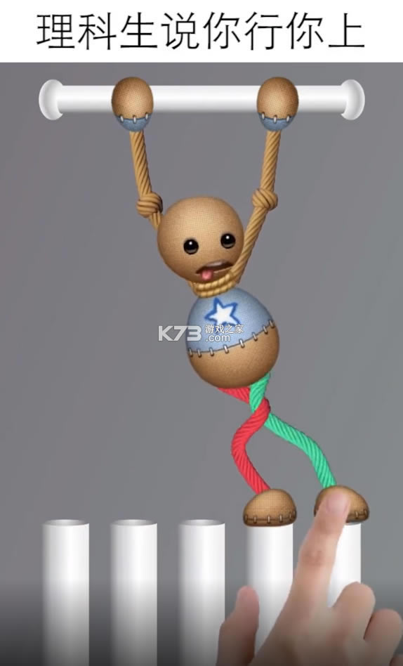 1、绳索解谜游戏前面一到十关卡都是比较简单的只有两个柱子。