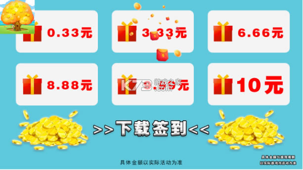 一款非常有趣的种植经营游戏。疯狂冲冲冲红包版中玩家开局就能免费领取一棵树苗,每天只需要浇水施肥就可以让树苗成长啦,还可以兑换真实的水果哦。