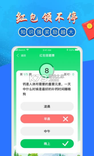 1、考验知识储备的时候到了,挑战关卡赚取丰厚积分兑换红包更快捷。