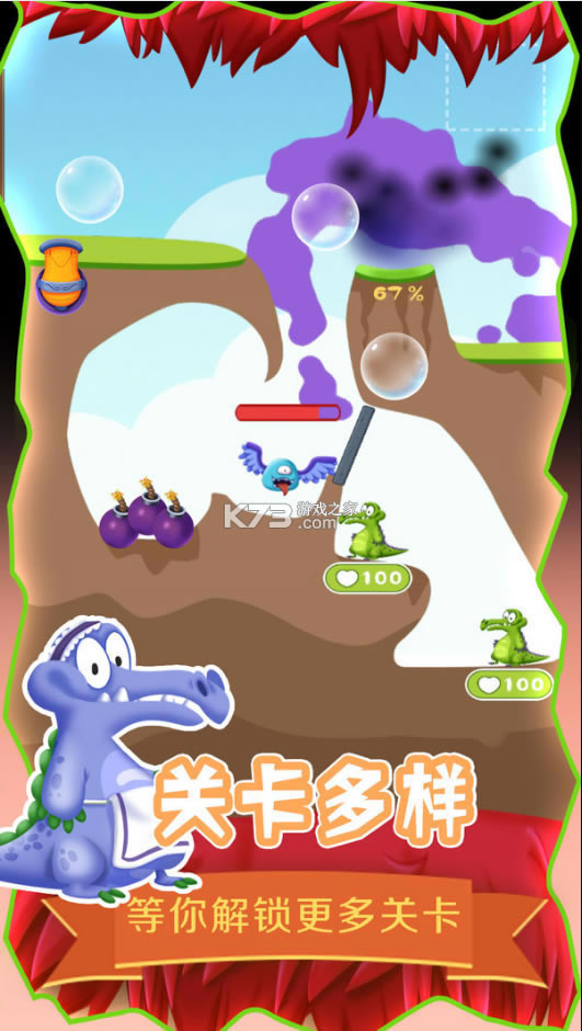 救救小鳄鱼是一款非常考验玩家智慧的休闲益智类闯关游戏,游戏的中,玩家将会帮助小鳄鱼在这里进行逃脱,可怜的他被困住了,喷发的污水如果碰到的小鳄鱼,游戏也就结束了,你要做的就是利用关卡提供的道具,来保护小鳄鱼哦。