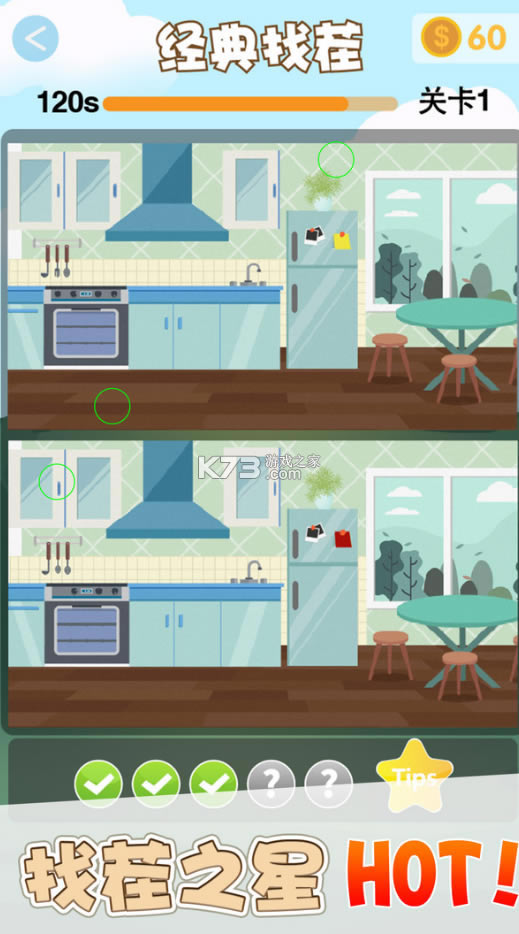 时间限制,在有限的60秒时间最快找出差异,获取更多金币,超刺激玩法!