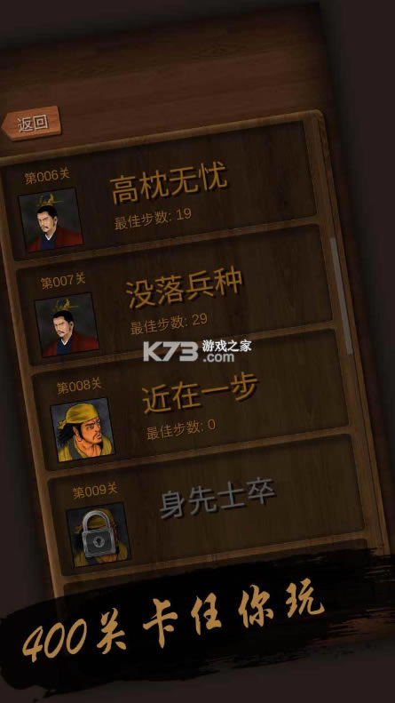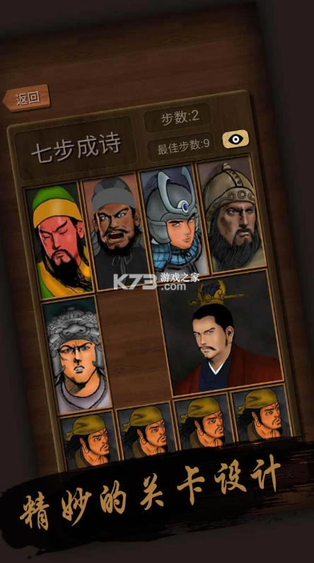 《经典华容道游戏》是一款传承经典的三国益智过关手游,游戏具有400多关卡,通关难度极大,还有全球通关速度排行,攻克所有的难关,锻炼自己大脑,开发智力。