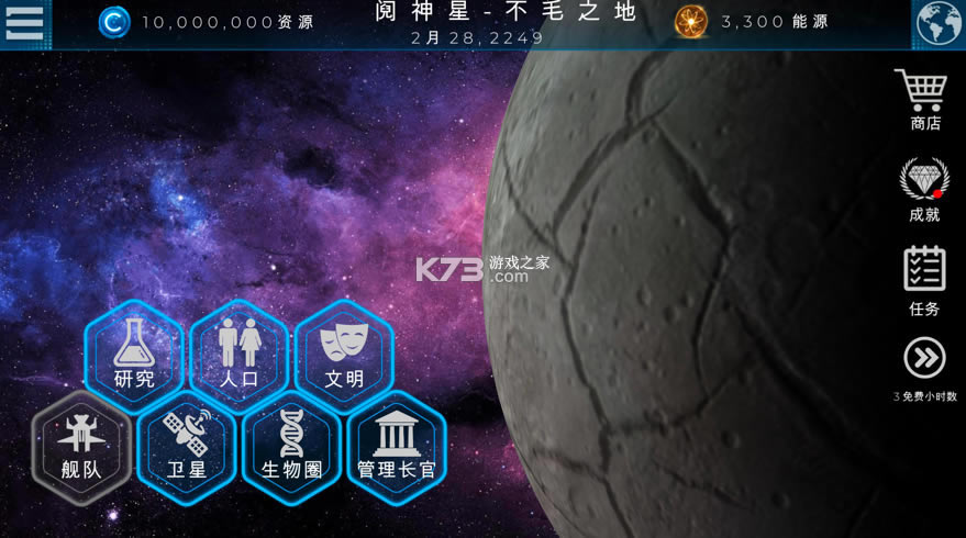 在虚拟行星上建造殖民地,包括酒神星、世界末日星、 本都星、遗忘河和北风神星;