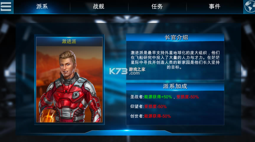 加入四个星际区之一,每个区对殖民都有不同好处;