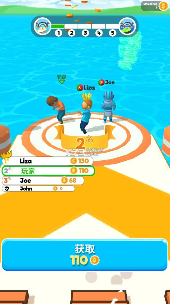 2、游戏的时候会匹配十名玩家参与进来,谁能够率先通过终点就能够拿下胜利;