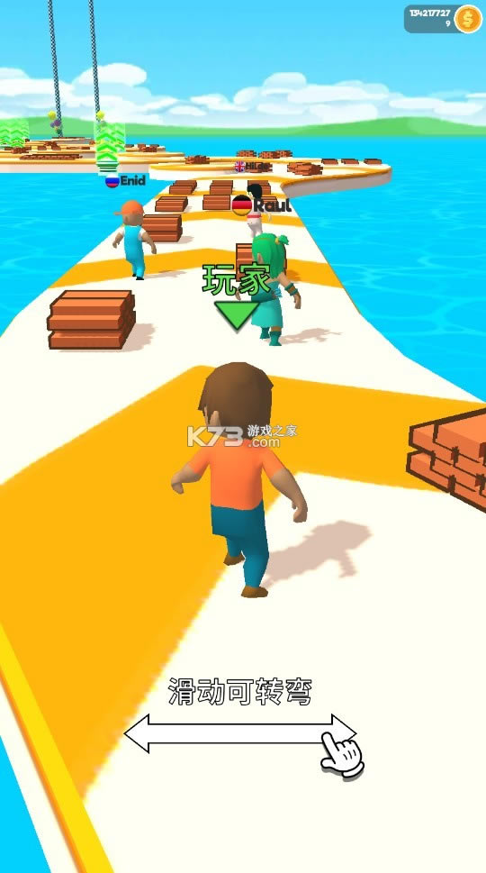 一款竞技玩法的跑酷闯关游戏。赛道在水面上蜿蜒盘区,如果就这么按照赛道的走向冲刺到终点,肯定会花费很长的时间,收集赛道上的木板建造自己的桥梁,抄近道以更快的速度奔向终点吧!不过竞争可是非常激烈的,其他玩家可不会手下留情的哦。