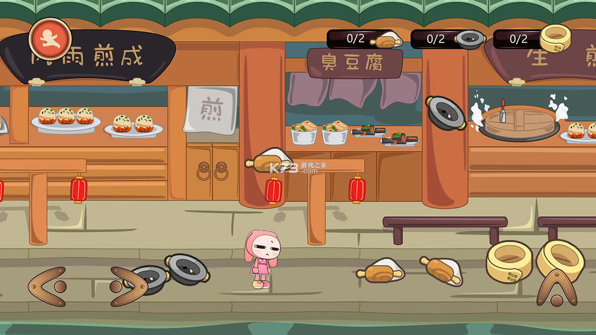 1.剧情模式: 关卡设定的物品从天而降,通过跳跃选取物品,通过移动调整物品位置并消除。消除指定的物品完成关卡并获得道具奖励,收集道具可以换取角色的时装。