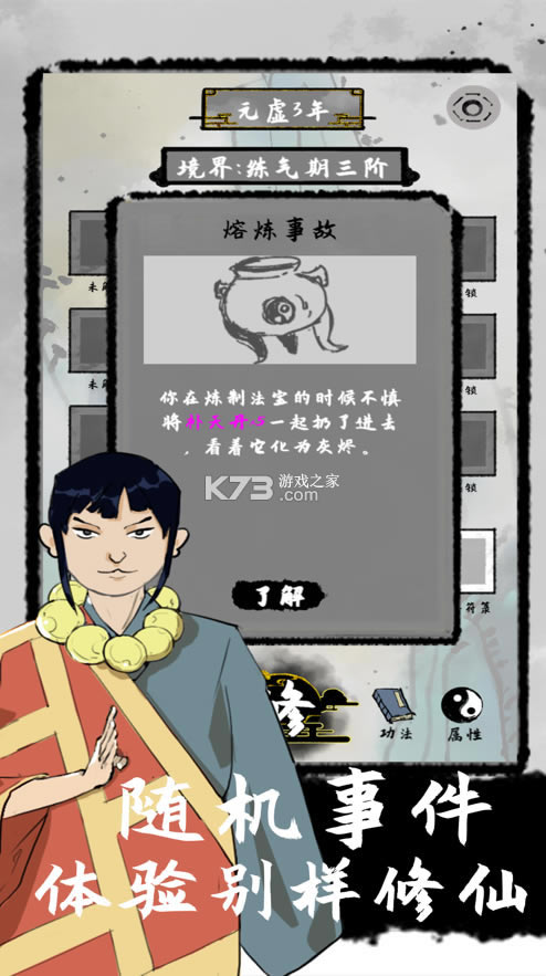 丰富的法宝,丹药,符箓,随机事件,尽情去体验随机的乐趣。