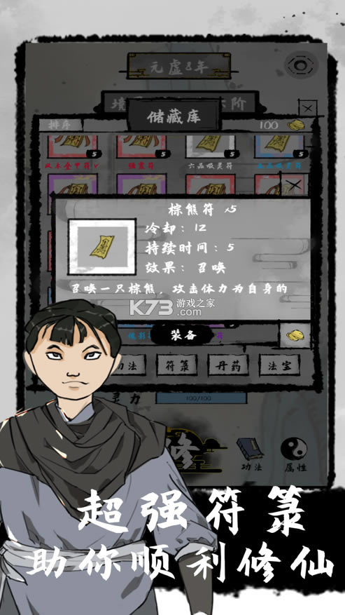 上百种符箓丹药随心收集使用,注意,机会只有一次,不要吝啬自己手上能救命的家伙。