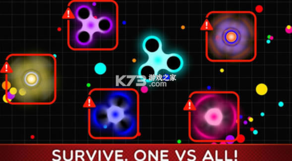趣味多多快来体验。玩家控制指尖陀螺在霓虹空间宇宙中遨游,收集色彩小点可以增加指尖陀螺的各种属性。 通过对撞可以消灭其他指尖陀螺,同时也有可能被更为强大的指尖陀螺消灭。较好的战斗策略是避开强者,选择较小的进行攻击,