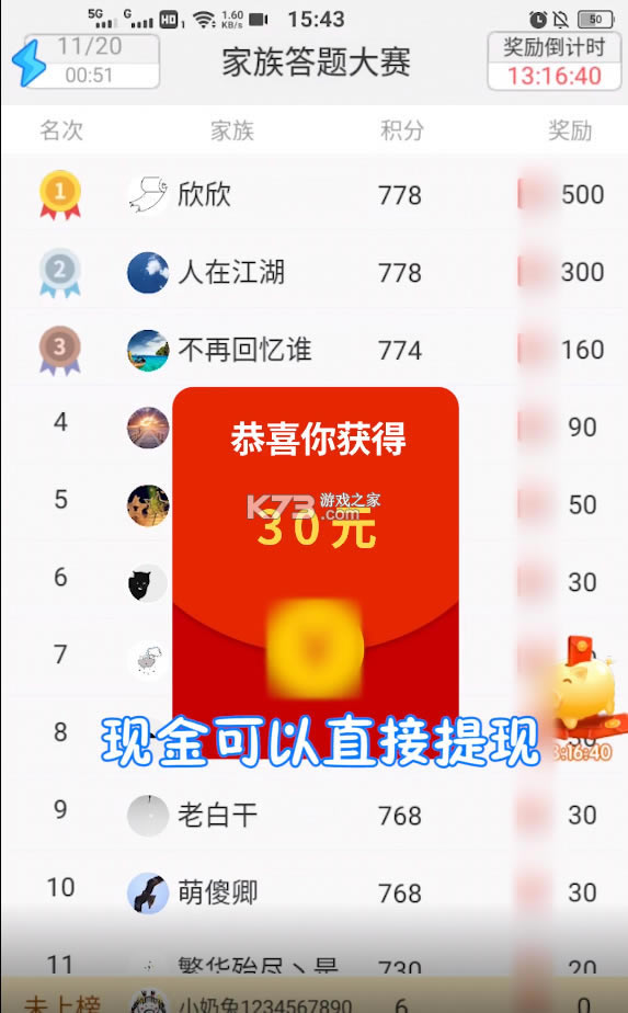 3、实时互动:实时答题,还能赢奖金