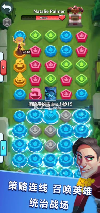 还有更多的内容等待着玩家的探索,快来下载游戏一起进行探索吧,不要错过了哦。游戏中可以通过简单的连线消除和其他玩家进行对战,消除不同的色块可以召唤技能各异的英雄,