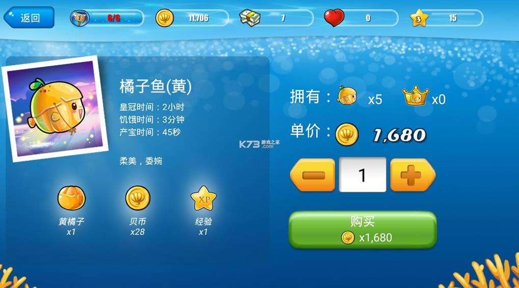 《开心水族箱旧版本免费无限开心宝》是一款可以让玩家沉浸在海洋世界的云养鱼游戏,在游戏里玩家可以收集到近百种的不同鱼类进行饲养,玩法也十分的简单,是一款十分温馨的休闲游戏!