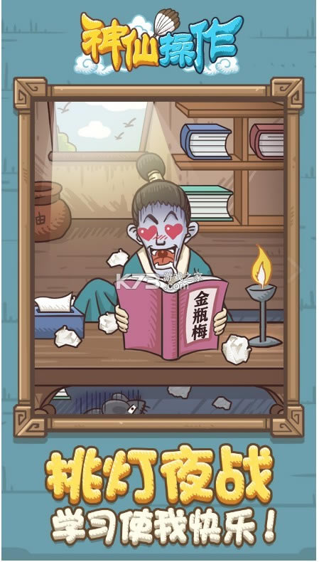 《神仙操作》是一款十分有趣的益智游戏,游戏里颠覆了大量的传统历史元素,你可见过僵尸半夜挑灯夜战苦读书,读的确实金瓶梅,还有许多搞笑元素,不仅能动脑还能收获快来,快来游戏里体验吧。