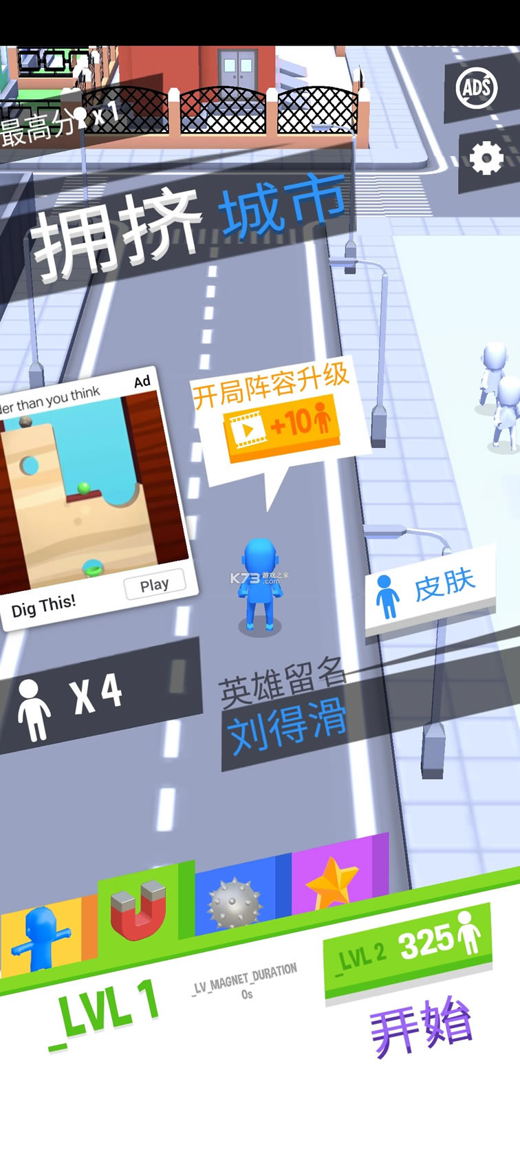 城市游走圈粉,收集散落人群,同化其他小团体,组成超强阵容!
