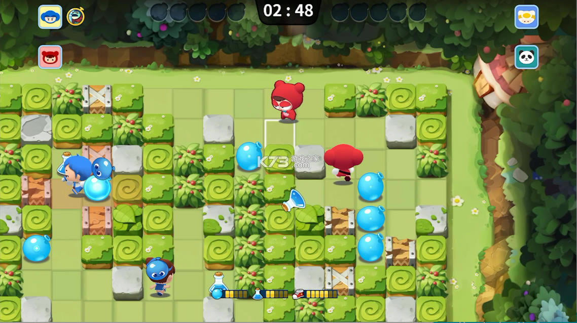 玩家操控角色放置泡泡,然后来通过泡泡的爆炸给予对手攻击
