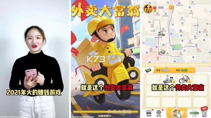 送外卖赚钱的休闲趣味游戏,玩家变身成为了一个外卖小哥,跟着地图送餐,体验外卖骑手的日常生活,通过不断的合成自己的送餐车来提高自己的送单率,从而获得更多的红包奖励,满0.3元即可提现哦