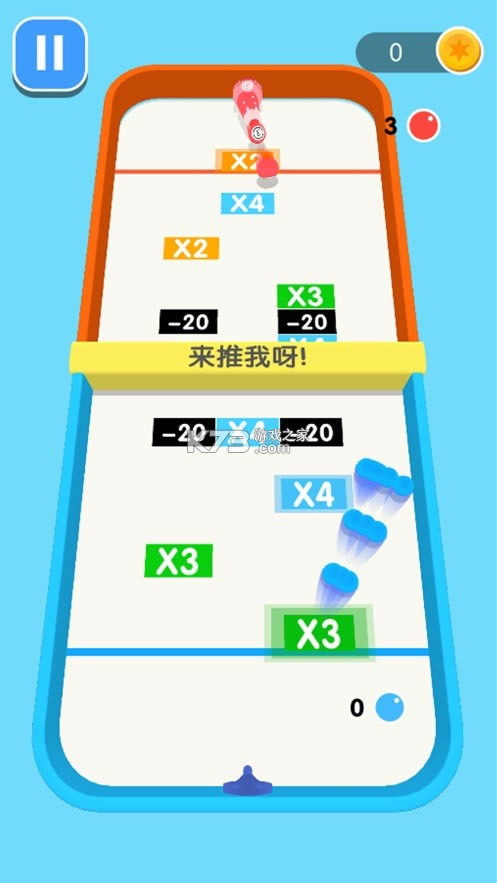 球球你快加倍,一款休闲解压小游戏。游戏玩法非常简单,玩家只需瞄准射击你的小球,经过倍数加倍推动木块和对手对决,考验你的计算能力,看谁能先将木块推到底端。