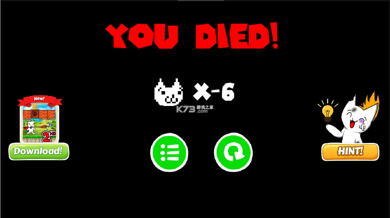 具有简单的游戏风格和具有挑战性的游戏内容,各种陷阱都隐藏在其中。它需要无数的死亡。因此,游戏过程非常滥用。娱乐之前,您必须做好。要做好心理准备。在游戏中,玩家必须控制表情稍微有些嘲笑的小猫,然后在陌生的大陆上冒险。他们要做的就是避免所有怪物前进!但是,他们必须运用非凡的思维来突破这些关卡。关卡中有各种各样奇怪的东西。障碍会使玩家的心态崩溃。
