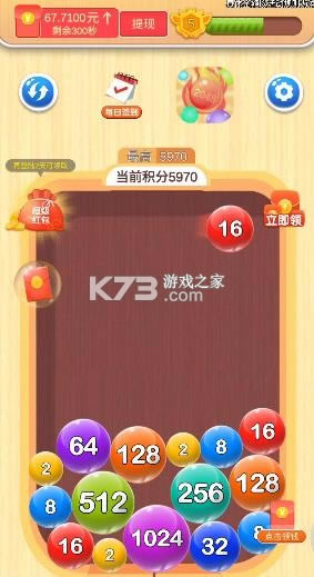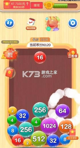 把数字球撞击在一起会变大合成2048,不仅好玩,还奖励红包;
