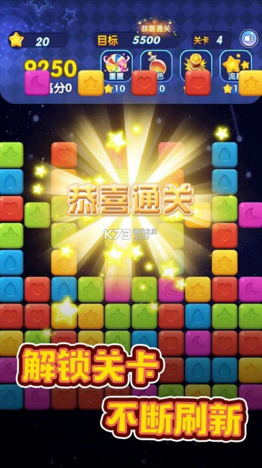 3、关卡超级多,每个关卡中你要多多消除,在不断地消除中达到过关要求,成功完成关卡挑战。