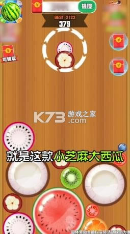 小芝麻大西瓜红包版是一款相当好玩的合并消除类休闲小游戏。无论是小芝麻还是大西瓜,玩家都可以对其进行消除,游戏增加了更多的玩法,增加了随机的元素,通过合成小芝麻或者是大西瓜,来获得游戏积分,并且解锁更多的游戏内容。