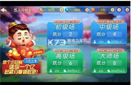 根据玩家的能力分为四个场,玩家可以按照自己的实力选择合适的场,如果你想提升技术的话可以去高手场找找感觉。还有其他好玩的玩法可以尝试!
