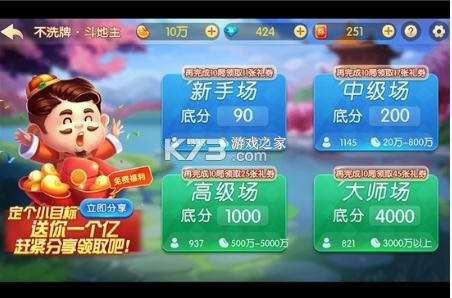 免费有趣的新手场,随时都能锻炼你的打牌技能,增加你的见识。