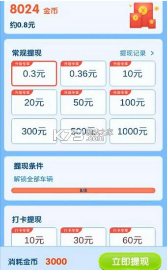 疯狂抢车位一款好玩的红包赚钱类游戏。在疯狂抢车位3红包版中,你可以通过解锁不同的车辆来占用车位进行红包的领取。游戏中随着大家手中车辆等级的提升你还可以领取更多的红包奖励。并且在这里没有任何的门槛限制你可以随时提现自己所获得的奖励。