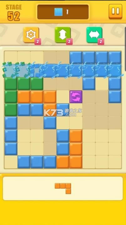 拖动移动块。进行垂直或水平线移除块,掌握好技巧则可通关