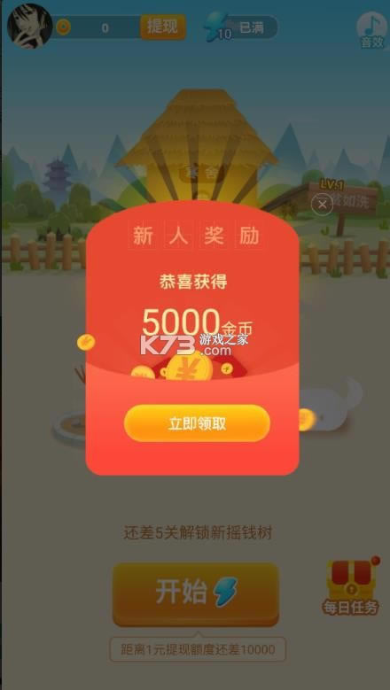 积累到10000金币能获得1块钱,但是获得50000金币,提现5块钱的难度非常大。