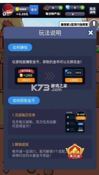 每开通一层洞穴,就可以解锁一个成就,得到的奖励也会更多;