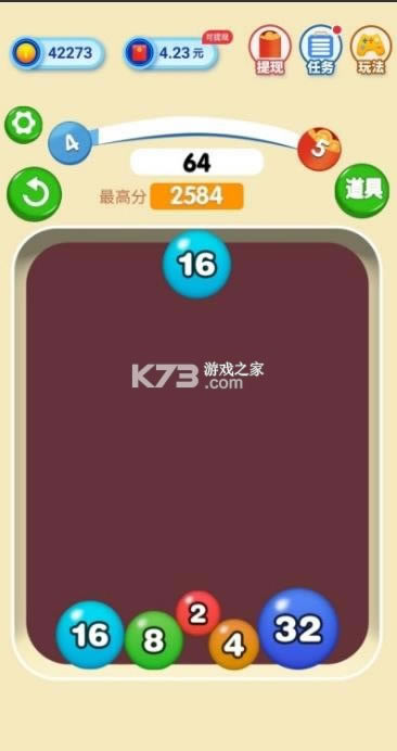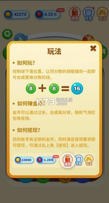 为朋友们打造的玩游戏赚钱的平台,弹球拿红包游戏采用的合并消除的玩法;