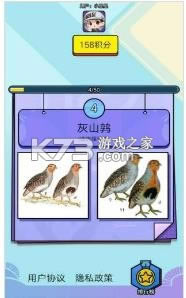 《飞鸟乐园》这是一款主要是以鸟类为主的一款答题赚收益的一款趣味性的游戏,里面超多的鸟类,进行回答出相应的问题就可以赚收益,还可以了解更多的飞鸟的知识。