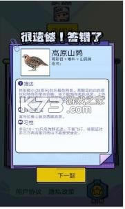 飞鸟乐园游戏中共包含了两千多种鸟类,用户根据飞鸟名字选择相应图片,如果用户猜错了,我们将告知正确答案,