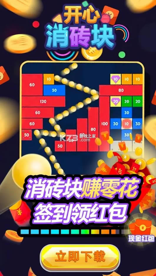 开心消砖块红包版是一款通过消除可以领红包的休闲手游。开心消砖块游戏为玩家设计了大量的关卡,这些关卡全是免费的。除此之外,每一个关卡的过关条件都不一样,你完成的越快越好,你还可以购买道具帮助自己更快速的完成挑战